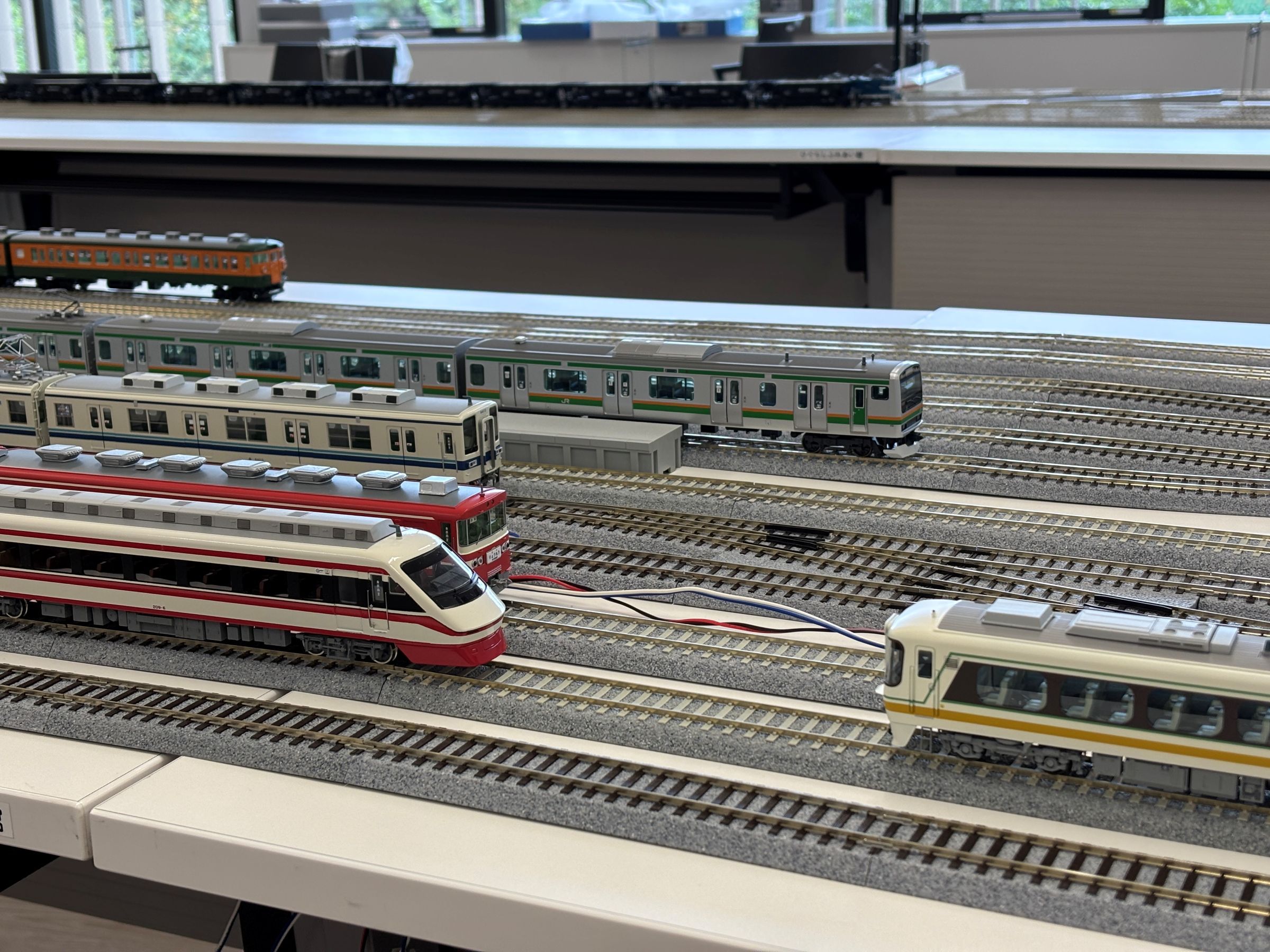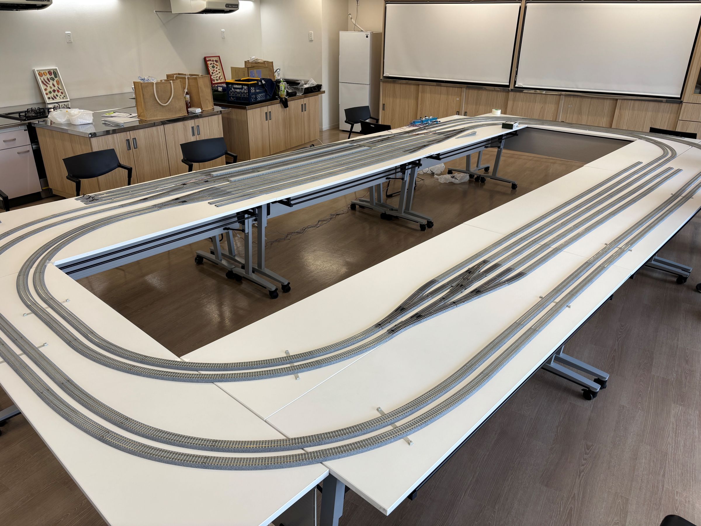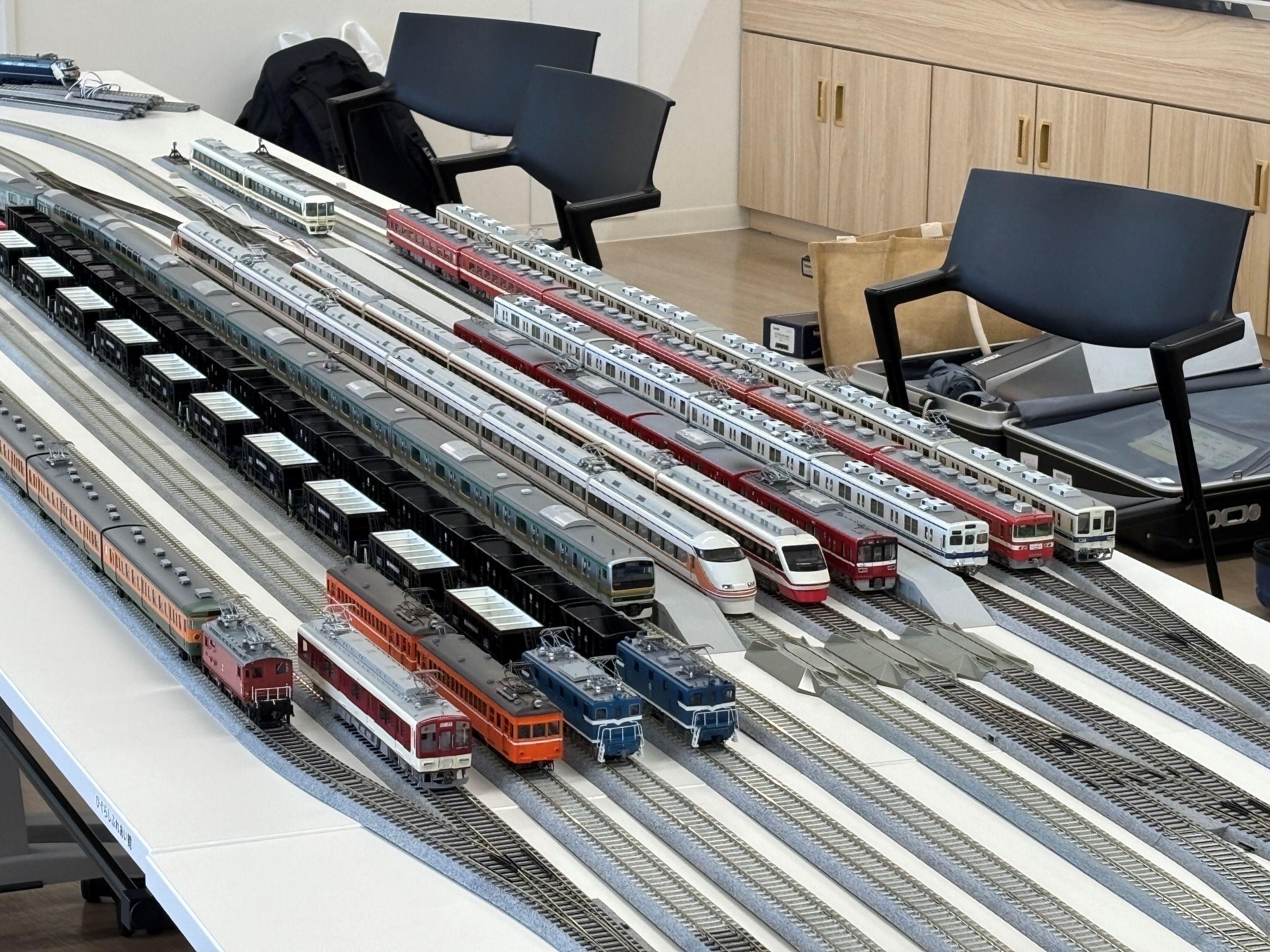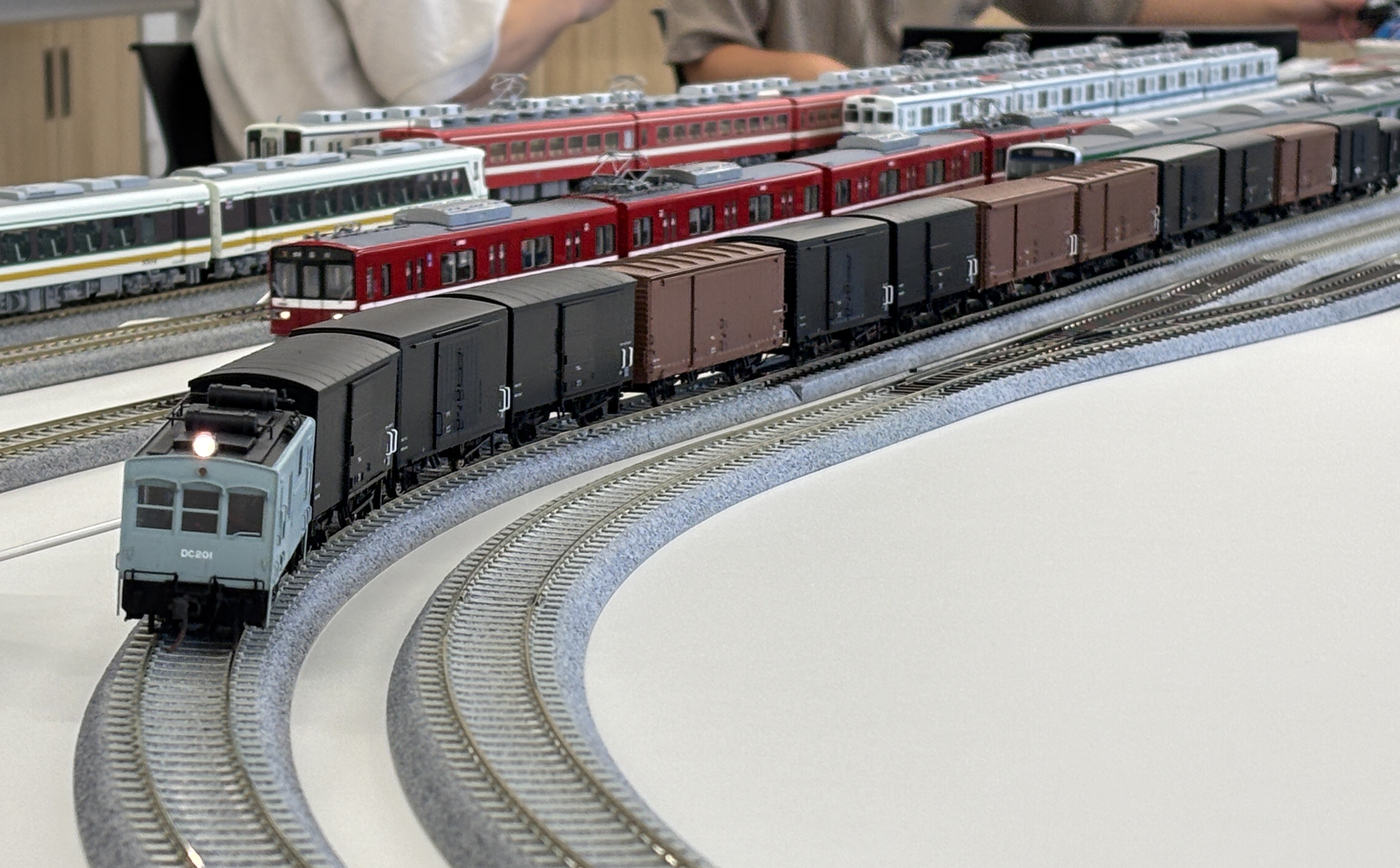 今回の配線も会場のテーブルを使い切って複々線配置です。