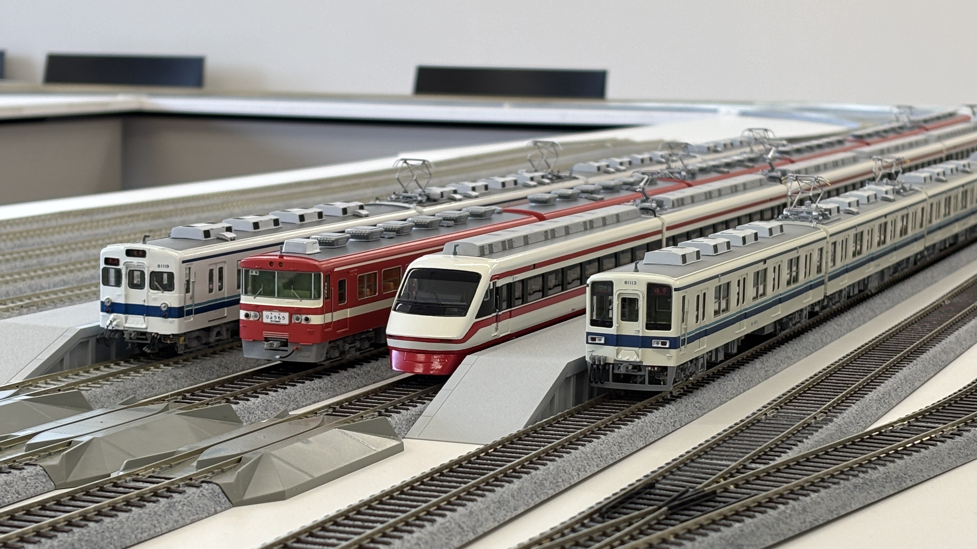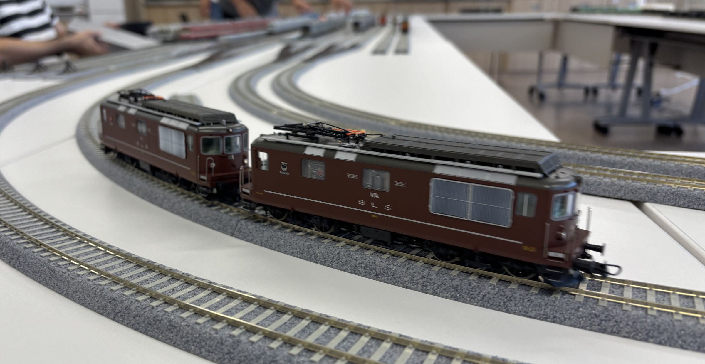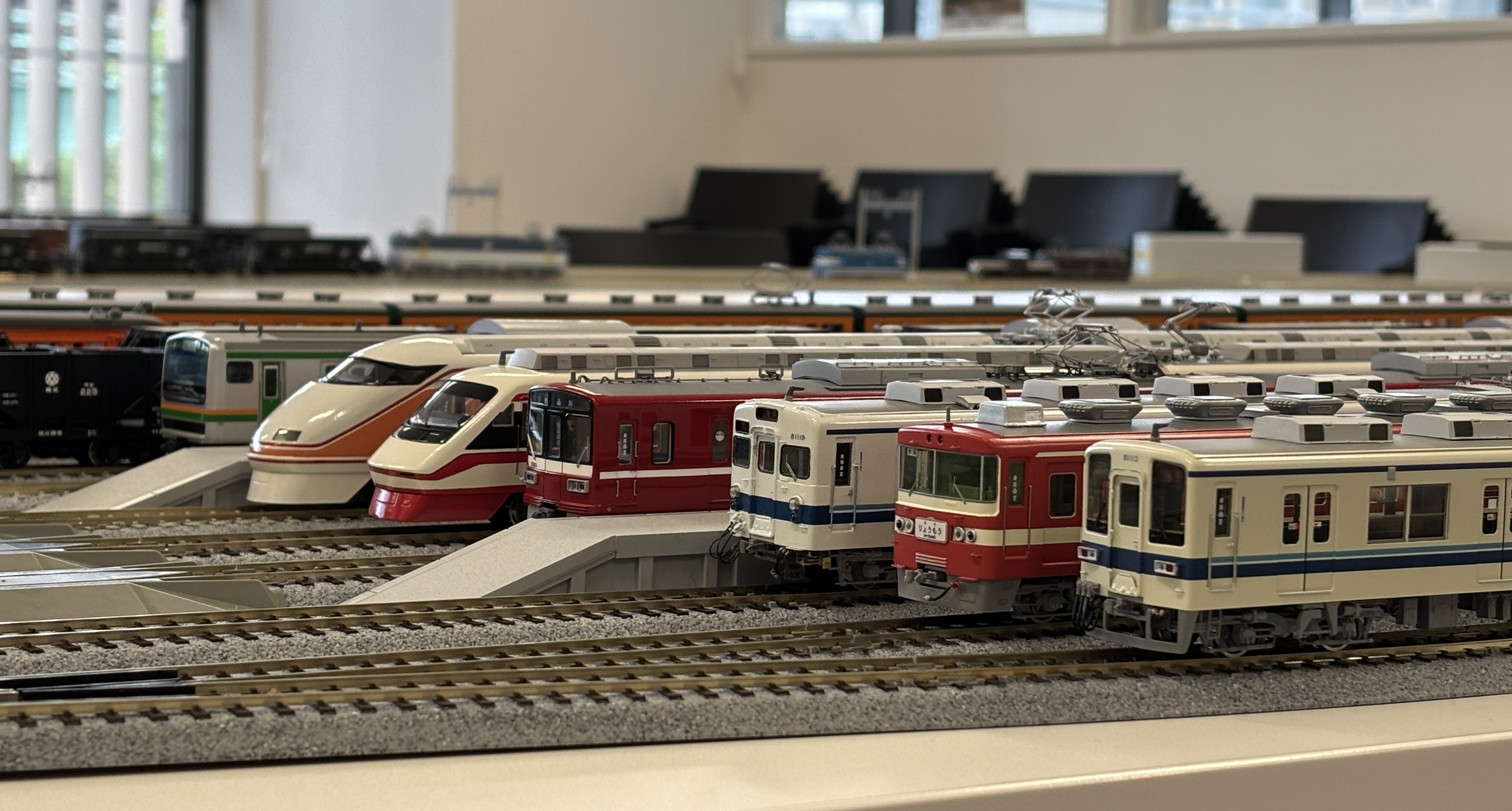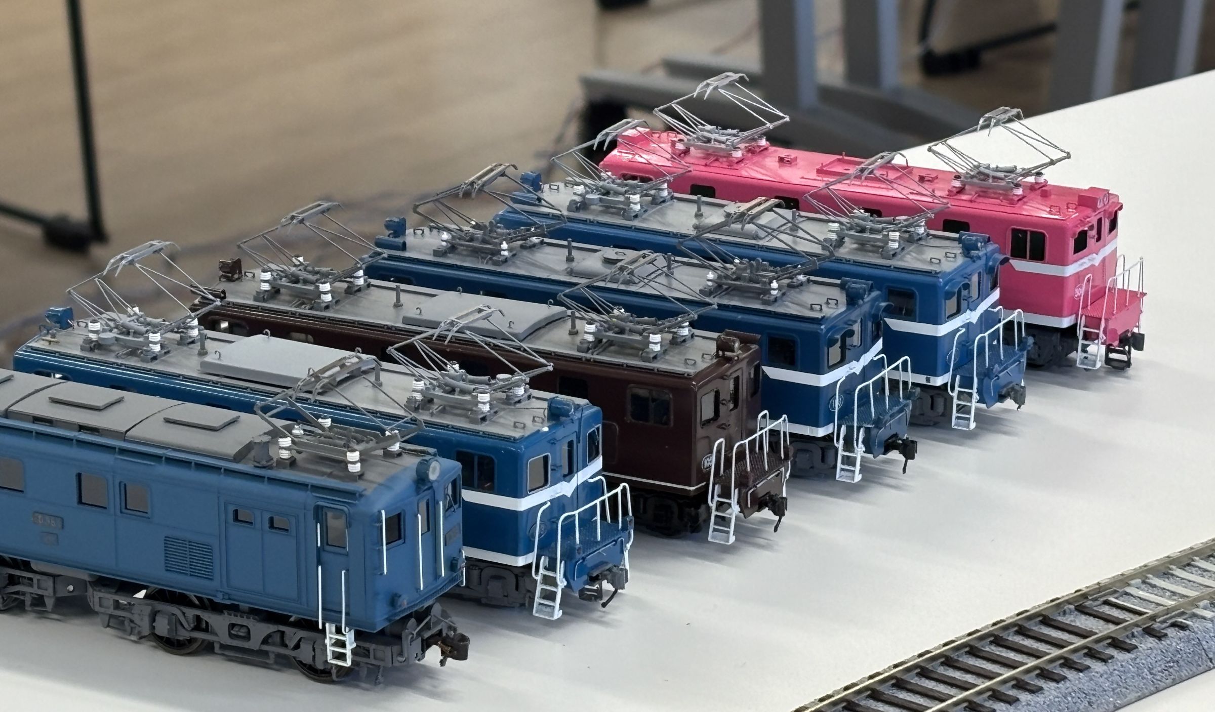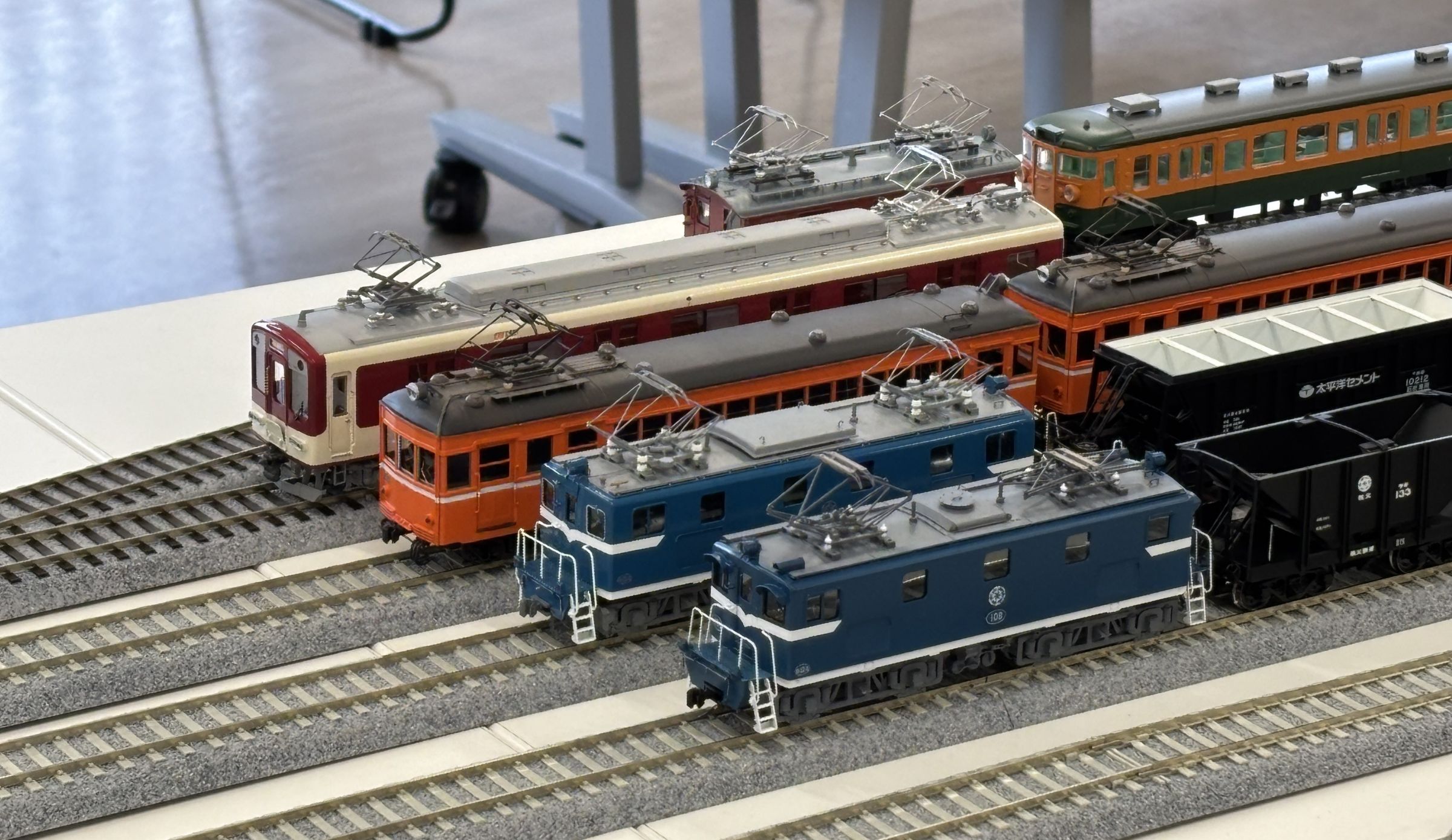 今回の配線も会場のテーブルを使い切って複々線配置です。